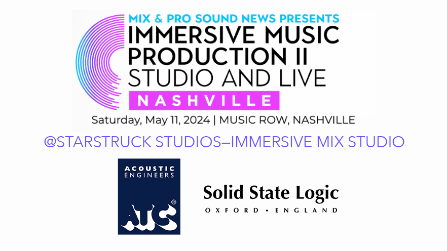 Mix Nashville: Immersive Production II, an all-day event on Music Row, followed by a nighttime Studio Crawl in Berry Hill, includes product demonstrations, special programming and immersive music playback sessions in the world-class facilities of Host Partner Curb Studios, Black River Entertainment (Front Stage and Back Stage Studios), Starstruck Studios’ Gallery and Immersive Mix Studio, the historic RCA Studio A and BMG Studio A.