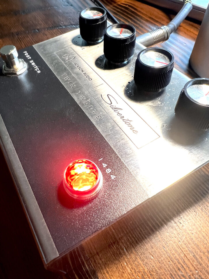 USVI (May 15, 2024)—A last-minute addition to the St John arsenal, the Silvertone made its presence known as soon as the F-style Amp Jewel lit up red. Based on the classic 1484 Silvertone Twin Twelve amp, Jackson Audio’s team took the exact amp schematic and built a stomp pedal, replacing vacuum tubes with JFET transistors. It’s as simple as it gets: Volume, Bass, Treble, Gain.