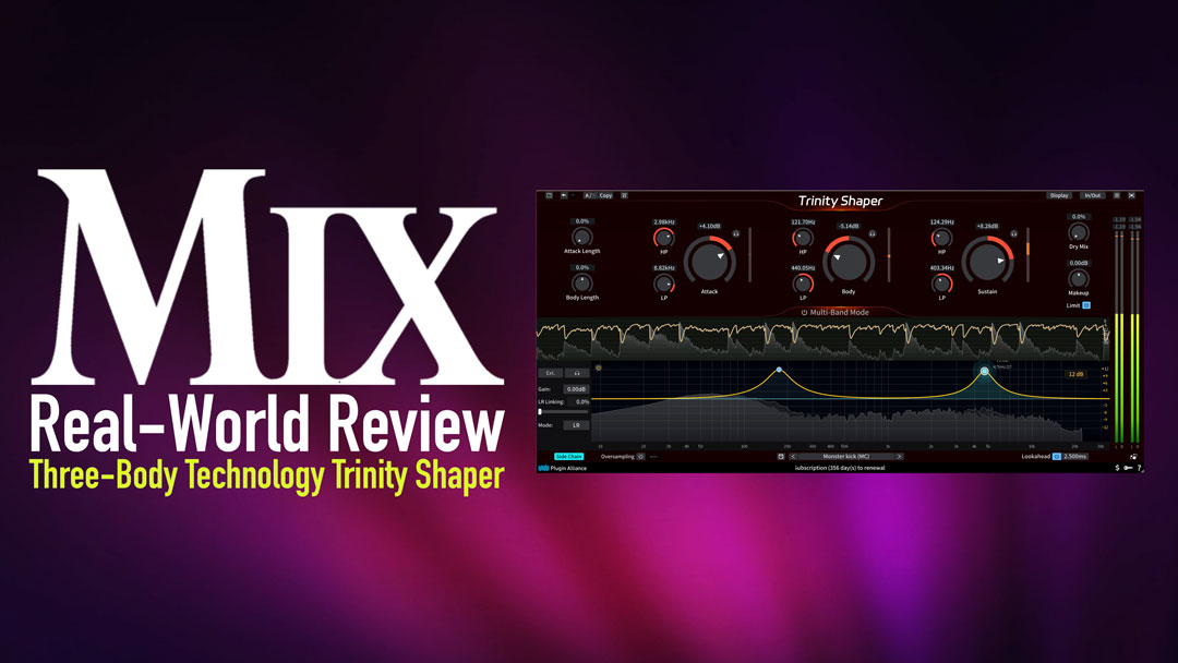 Three-Body Technology’s new Trinity Shaper plug-in revamps the paradigm, adding an additional gain stage—acting between attack and sustain—to sculpt your track’s sound with even greater control. Add Trinity Shaper’s multiband processing and comprehensive sidechain facilities to the mix, and you’ve got a real powerhouse at your fingertips.