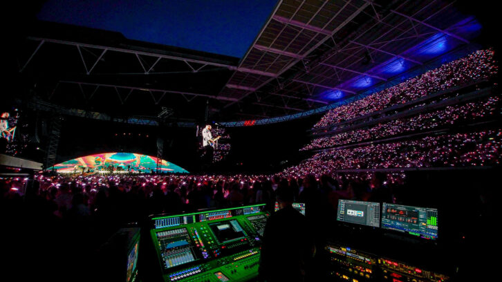 If the tour’s longevity is impressive, it pales in comparison to the tenures of some of its key crew, including Dan Green, Coldplay’s FOH engineer and audio producer since 1998, and Tony Smith, head of audio system design and FOH tech, who has worked with Green for 23 of those years. Almost as remarkable, the lion’s share of that timespan has found the duo working with DiGiCo worksurfaces.