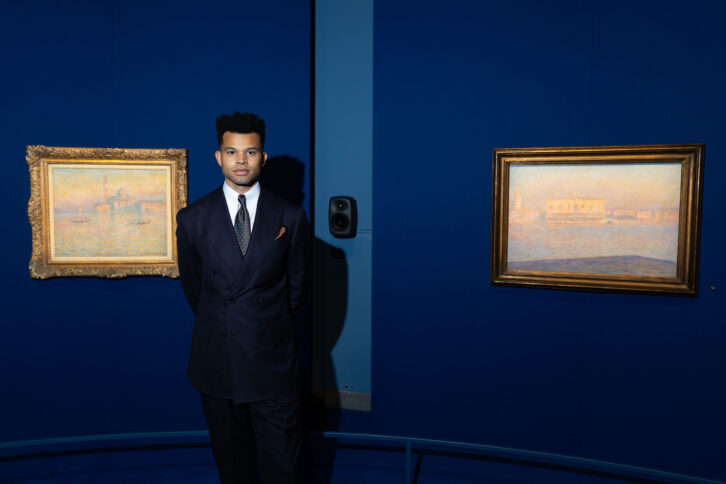 Photo caption: Composer Niles Luther, pictured at the Brooklyn Museum’s new exhibition Monet and Venice, for which he provided a symphonic score, brought to life via an immersive Genelec monitoring system.