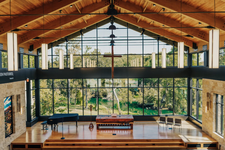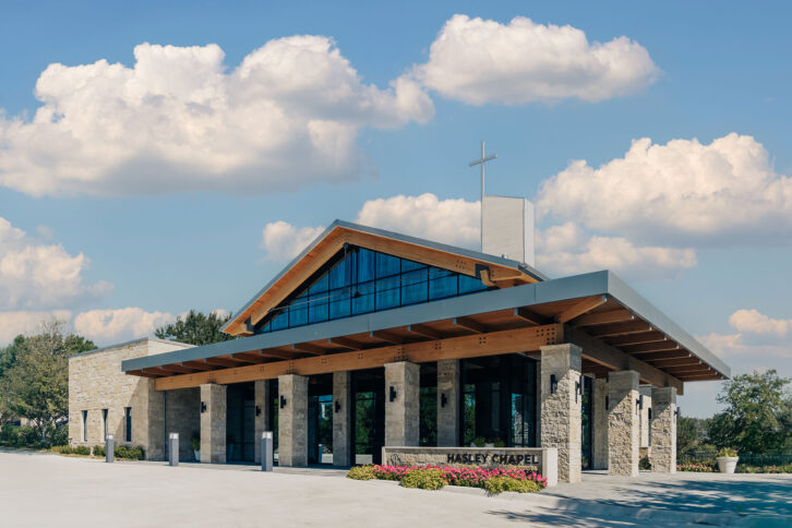 Hasley Chapel, a new worship space nestled in the northwest corner of St. Andrew Methodist Church’s campus in Plano, Texas, was built with both visual and aural aesthetics in mind. Designed by Dallas-based architectural firm GFF, with audio system specification and installation provided by local integrator Clear ProAV, the picturesque chapel overlooking a pond and wooded area now routinely hosts a mix of traditional worship services, weddings, memorials, small conferences, and other events.