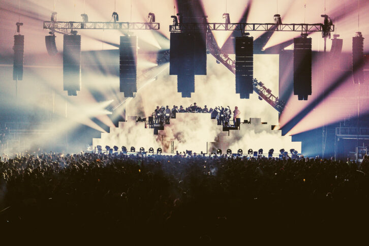 Typically, an FOH engineer’s function is to simply capture and reinforce what’s happening on stage. But in this case, Summit and Spitzer uniquely worked in tandem—the EDM artist focusing on generating his sonic content and connecting with the crowd, and the engineer spatially exploding that output and creating panoramic movement and other treatments. In essence, the audio portion of the show became more of a two-person performance.