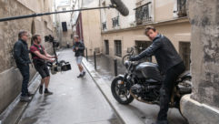 Oxfordshire, UK (July 31, 2018) — Tom Cruise, who famously performs many of his own stunts, doubles down on the derring-do in MISSION: IMPOSSIBLE...