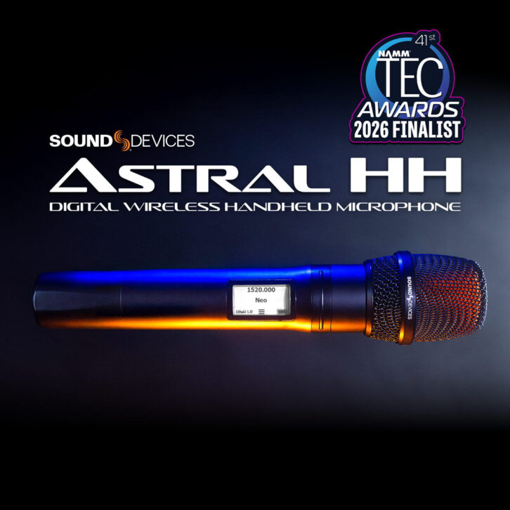 MADISON, WI, December 10, 2025 — Sound Devices announces that the Astral HH digital wireless microphone, the performance centerpiece of the brand’s next-generation Astral family of RF devices, has been selected as a finalist in the Wireless Technology category of the 2026 NAMM TEC Awards. The TEC Awards – a yearly celebration of accomplishments and innovations within the pro audio industry – will be presented during the 2026 NAMM Show, taking place at the Anaheim Convention Center in Anaheim California between January 20-24, 2026. Voting is now open to industry professionals and the public until January 12, 2026.